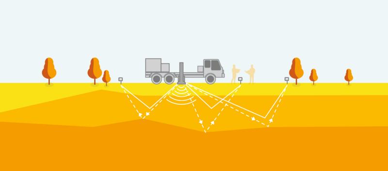 Bei den Messungen kommen spezielle Fahrzeuge, sogenannte Vibro-Trucks, zum Einsatz. Sie senden Schallwellen in den Boden, die an den verschiedenen Gesteinsschichten reflektiert werden. An der Oberfläche nehmen kleine Messgeräte – Geophone – diese Signale wieder auf. Aus den gewonnenen Daten erstellen Expertinnen und Experten ein detailliertes Bild der Gesteinsschichten im Untergrund.
